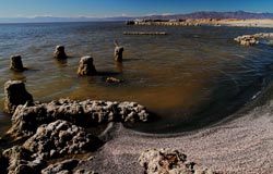 The Salton Sea, located in the southeastern corner of California, is actually a lake which occupies a desert basin known as the Salton Sink. This body of water covers a surface area of 376 square miles, making it larger than Lake Tahoe and Mono Lake. In fact, the Salton Sea is the largest lake in California. The Sea was created by a flood in 1905, in which water from the Colorado River flowed into the area.