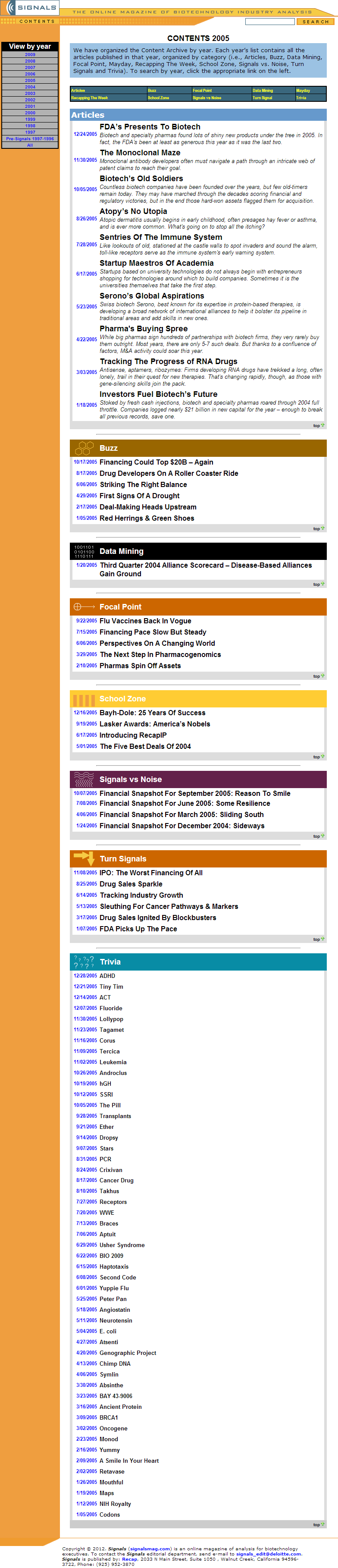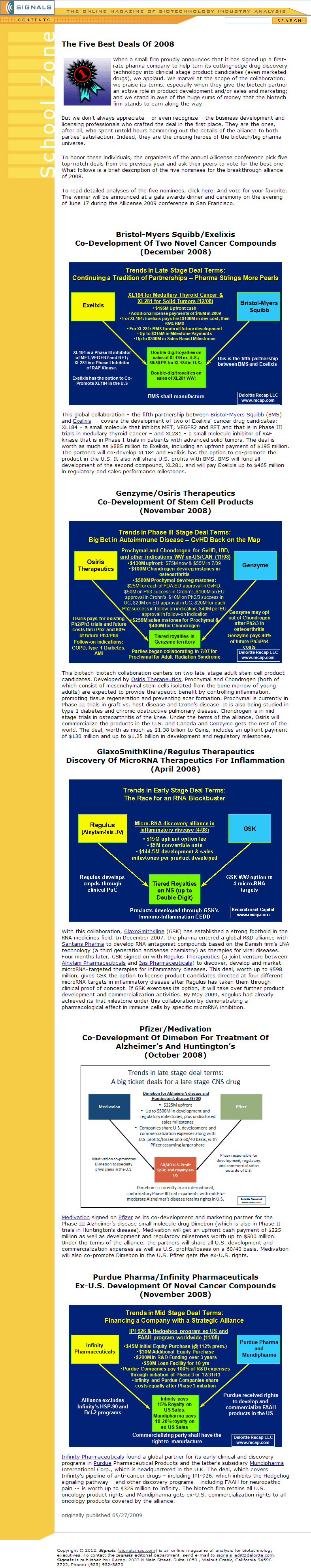 Designed this site from the ground up with the Biotechnology and Pharmaceutical industry in mind. This site would be the cross promotional access point to Recap.com's data and database. I helped the editor publish the online industry magazine, create covers and article-related graphics.